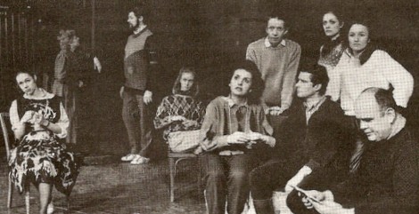 FOTO: 1986 Dreigroschenoper. Der große Erfolg "In dem Bordell, wo uns´re Hochzeit war!" Probenfoto. Von links: Anna WEINER, Christa KLIMMER, Vladimir SKAL, ?, SCHWARZ, Aliane PAPEZ, Peter STIPANIC, Michaela HUTMANN (Patrona Bavariae), Michaela FLEISCHER, Louis ESSL.